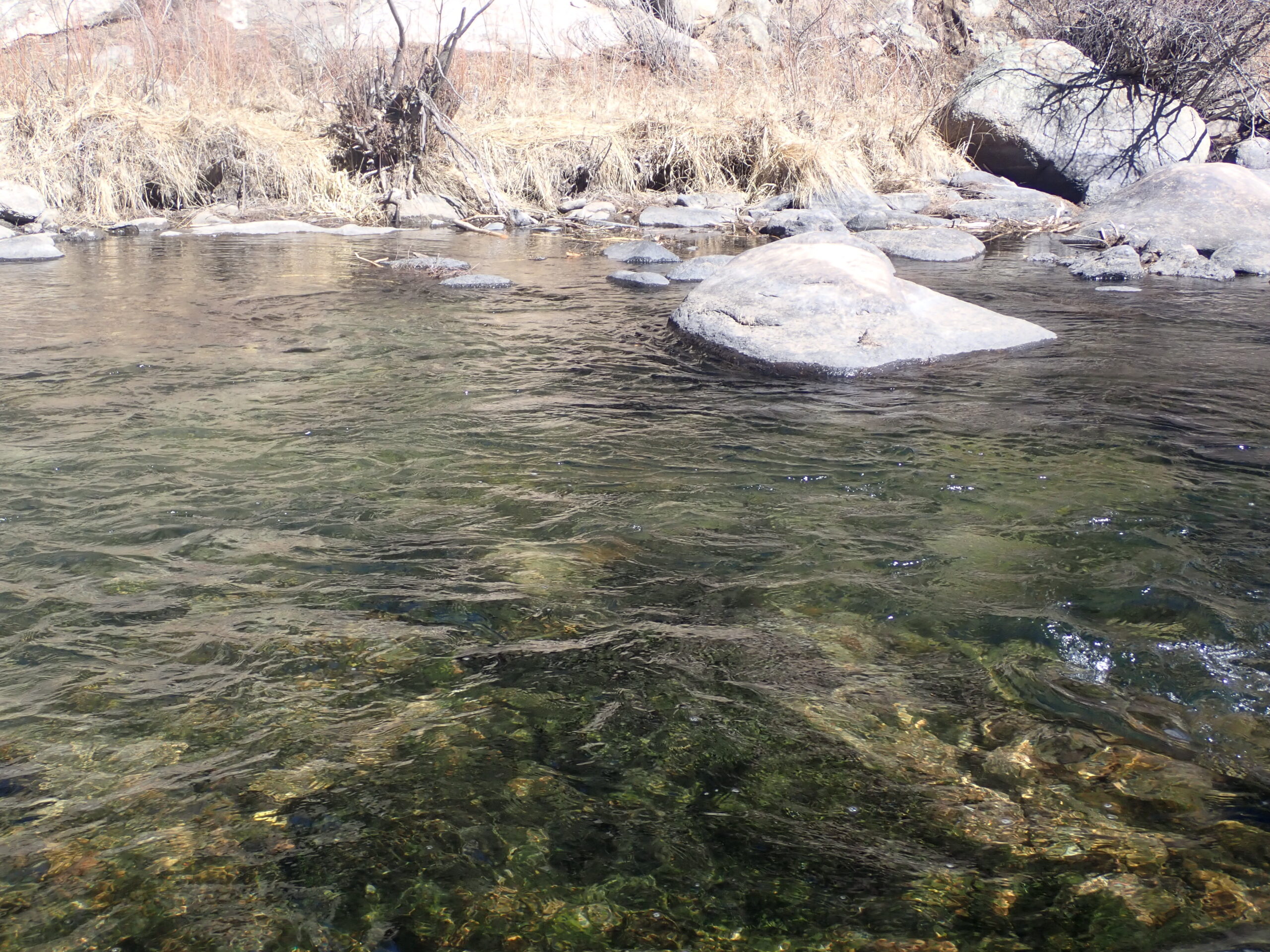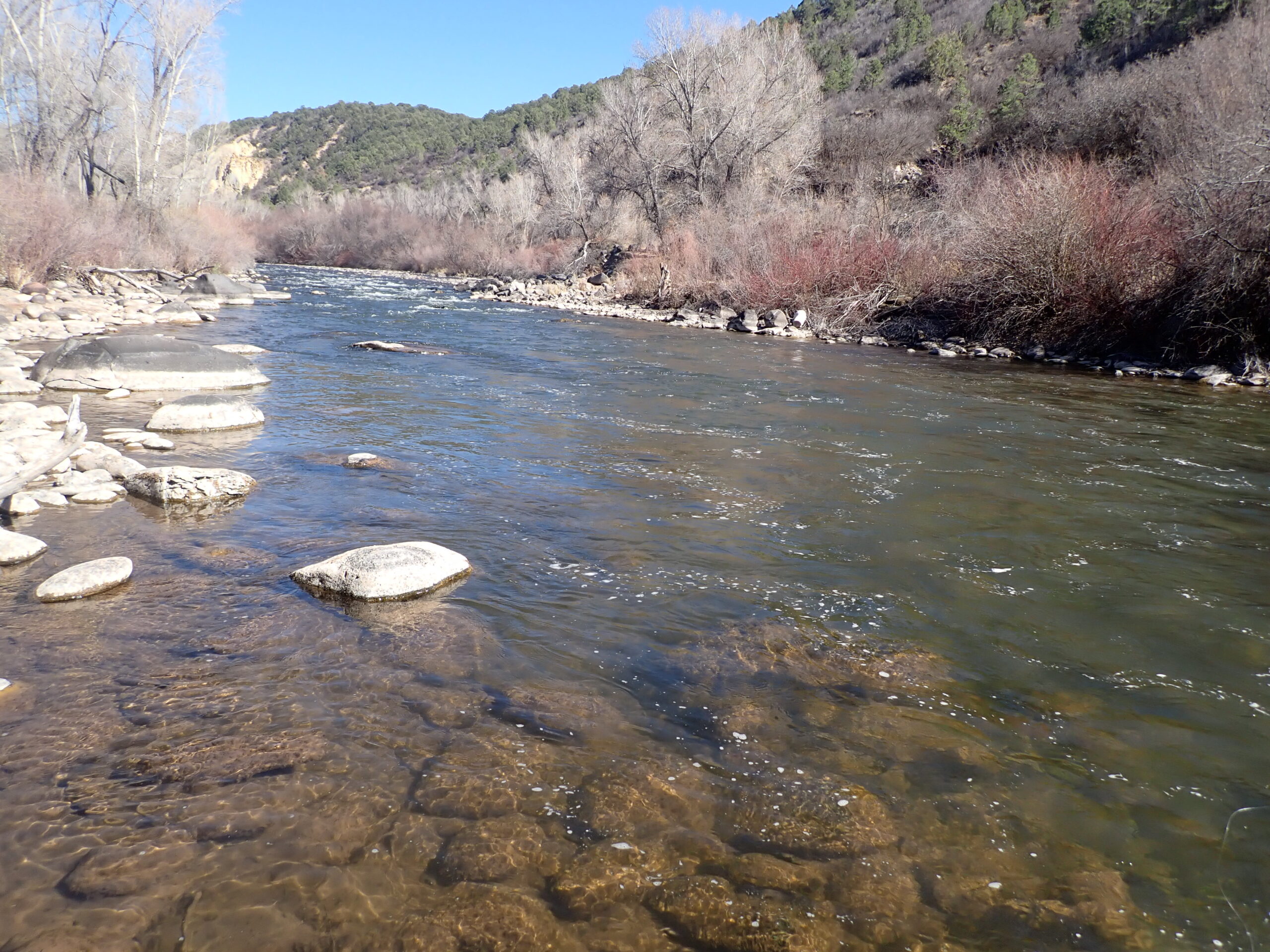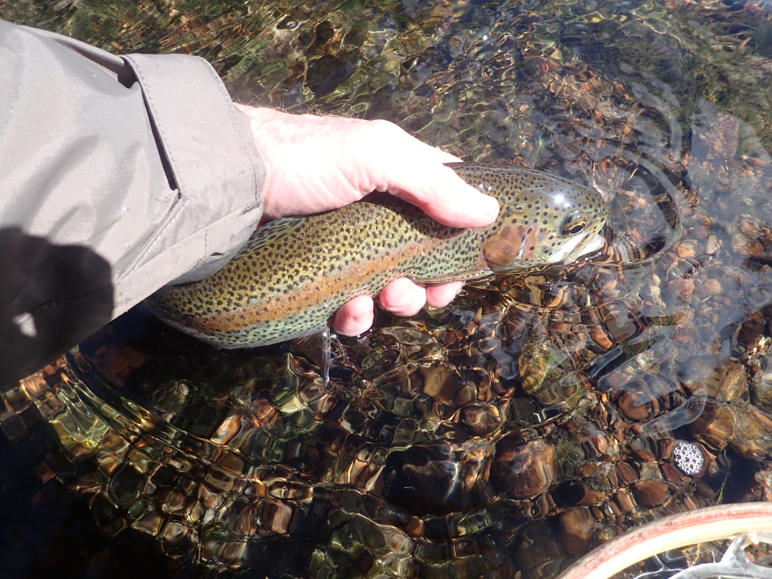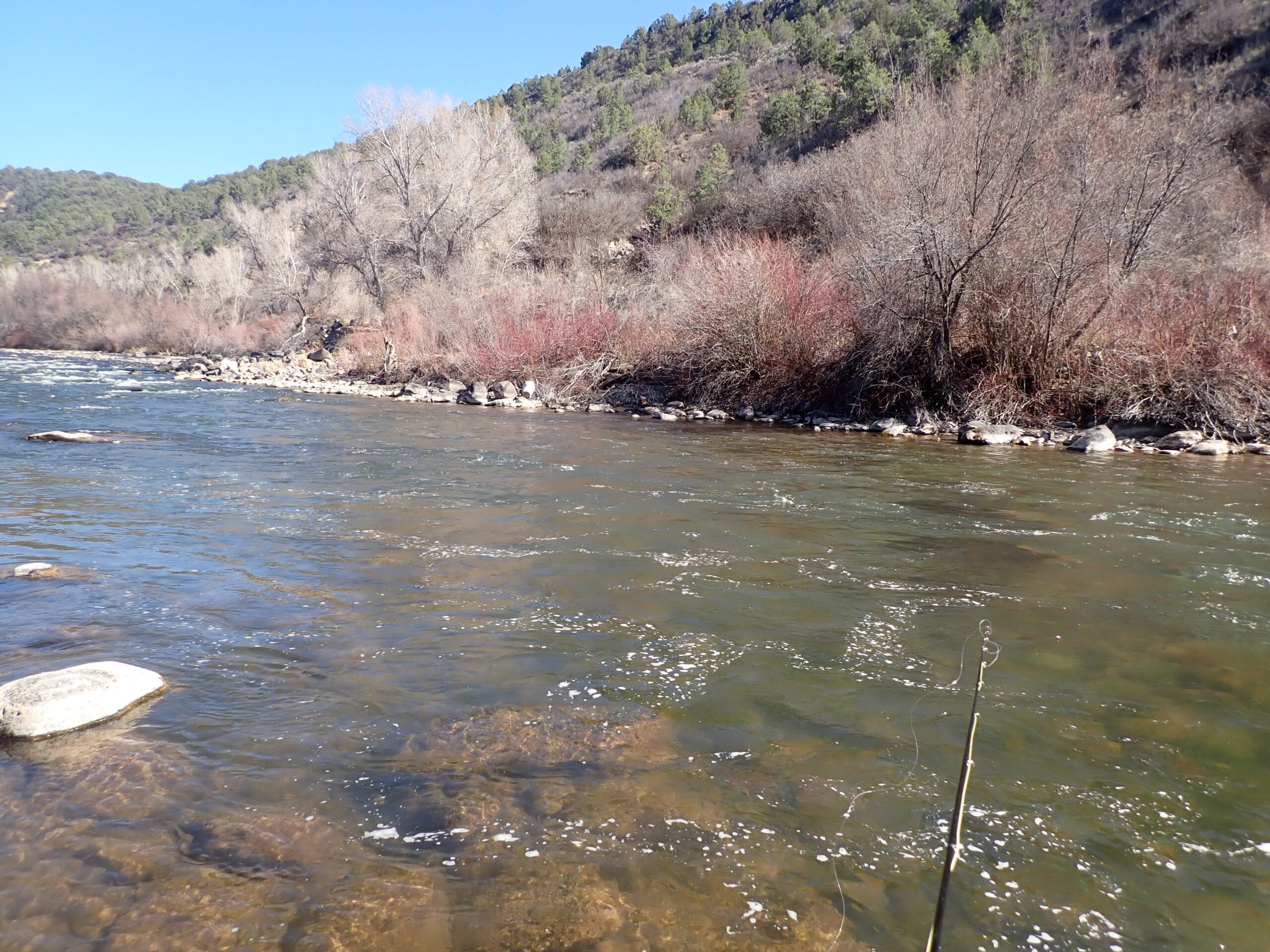 By 3:30PM I covered my targeted section of the river, so I hiked back to my crossing and completed my day. I achieved double digits and six of the landed fish were in excess of the twelve inch standard including two rainbows that exceeded fifteen inches. I have to admit that I was disappointed with the lack of dry fly action. I was convinced that prospecting with a deer hair caddis in the early afternoon would produce some results; but, alas, that was not the case. I spotted one blue wing olive, so perhaps it was too sunny, bright and windy, or I was on the downside of the baetis hatch. I suspect that another trip to the Arkansas River would take me upriver to the Salida area or above.