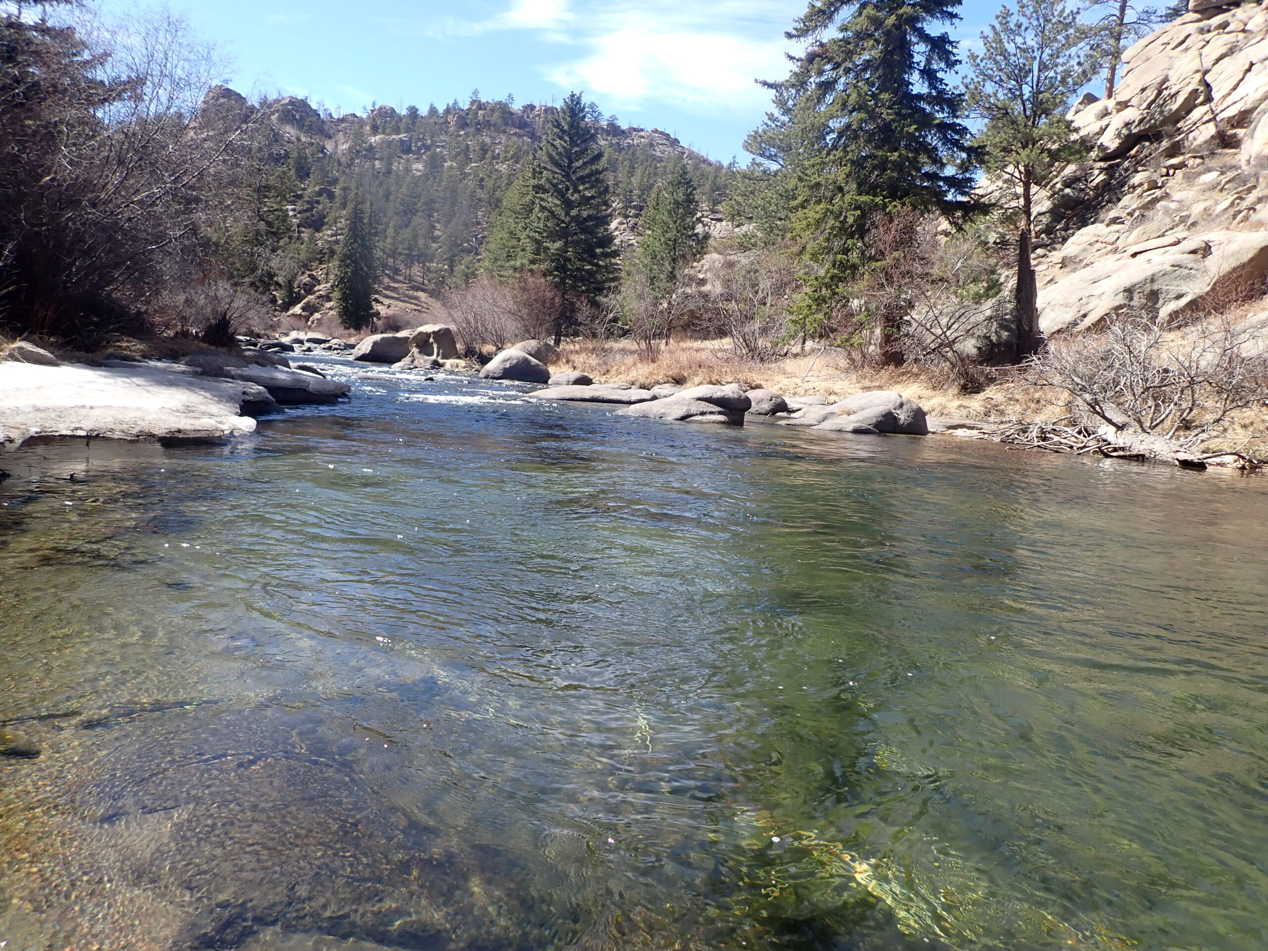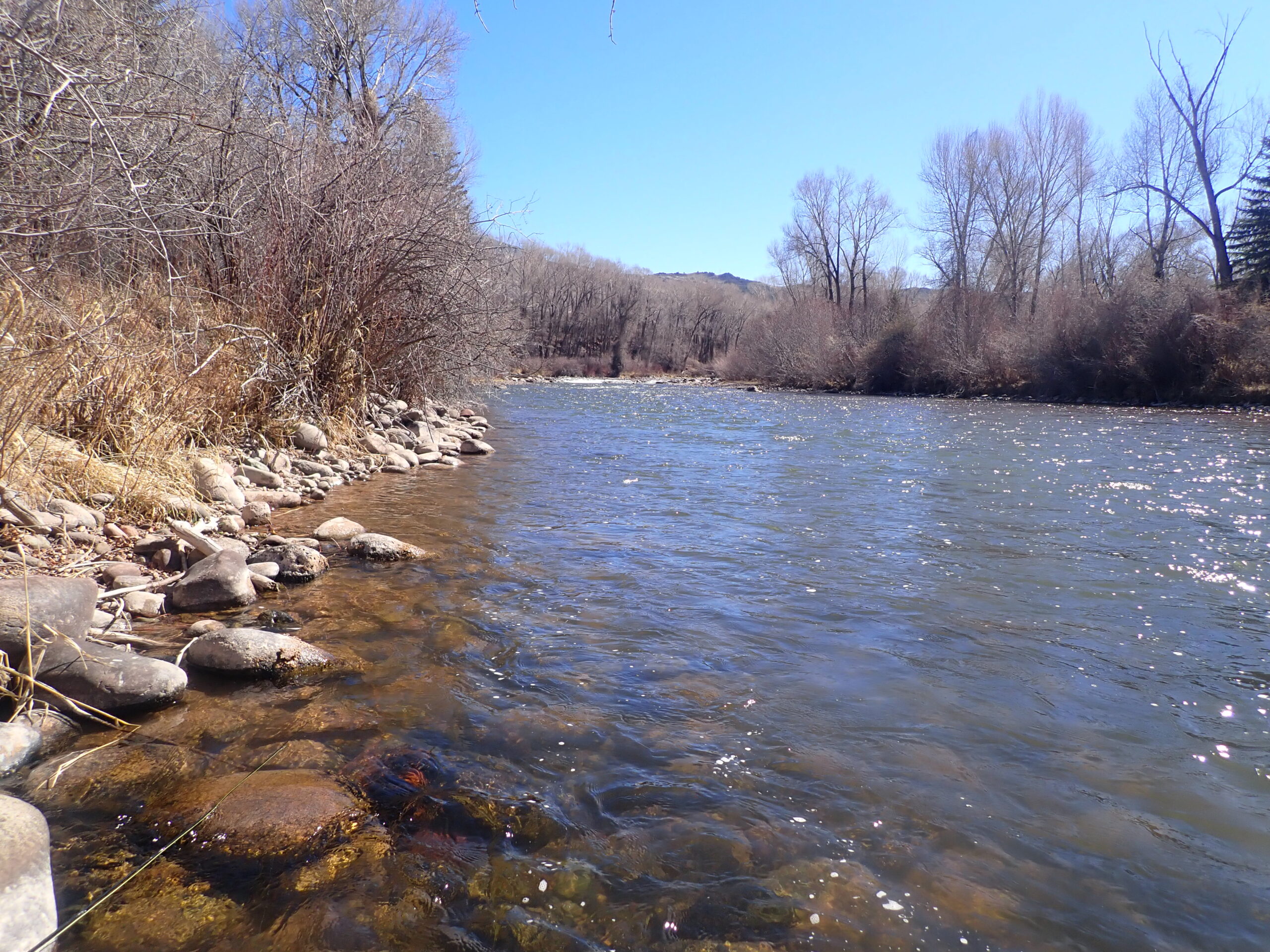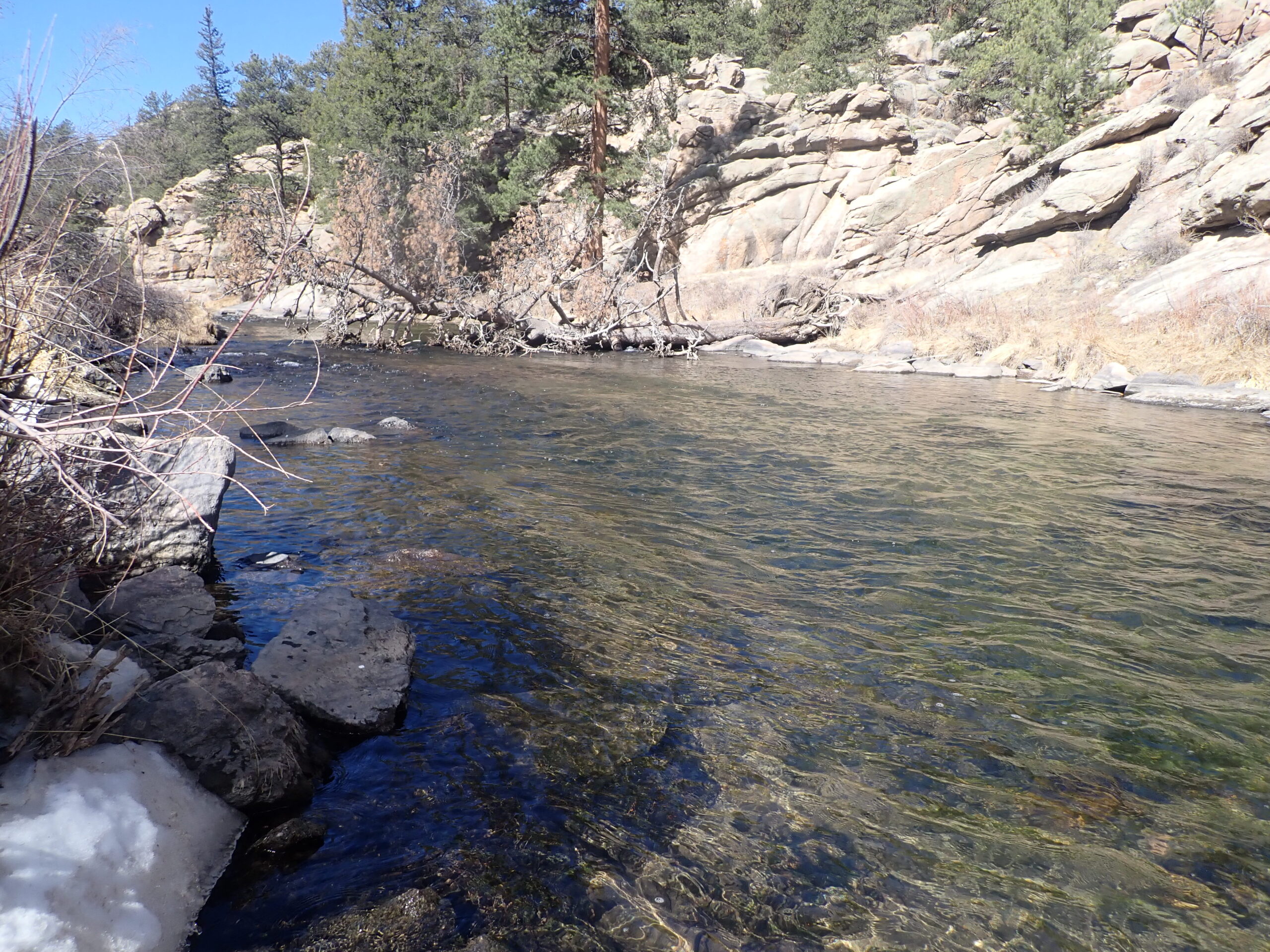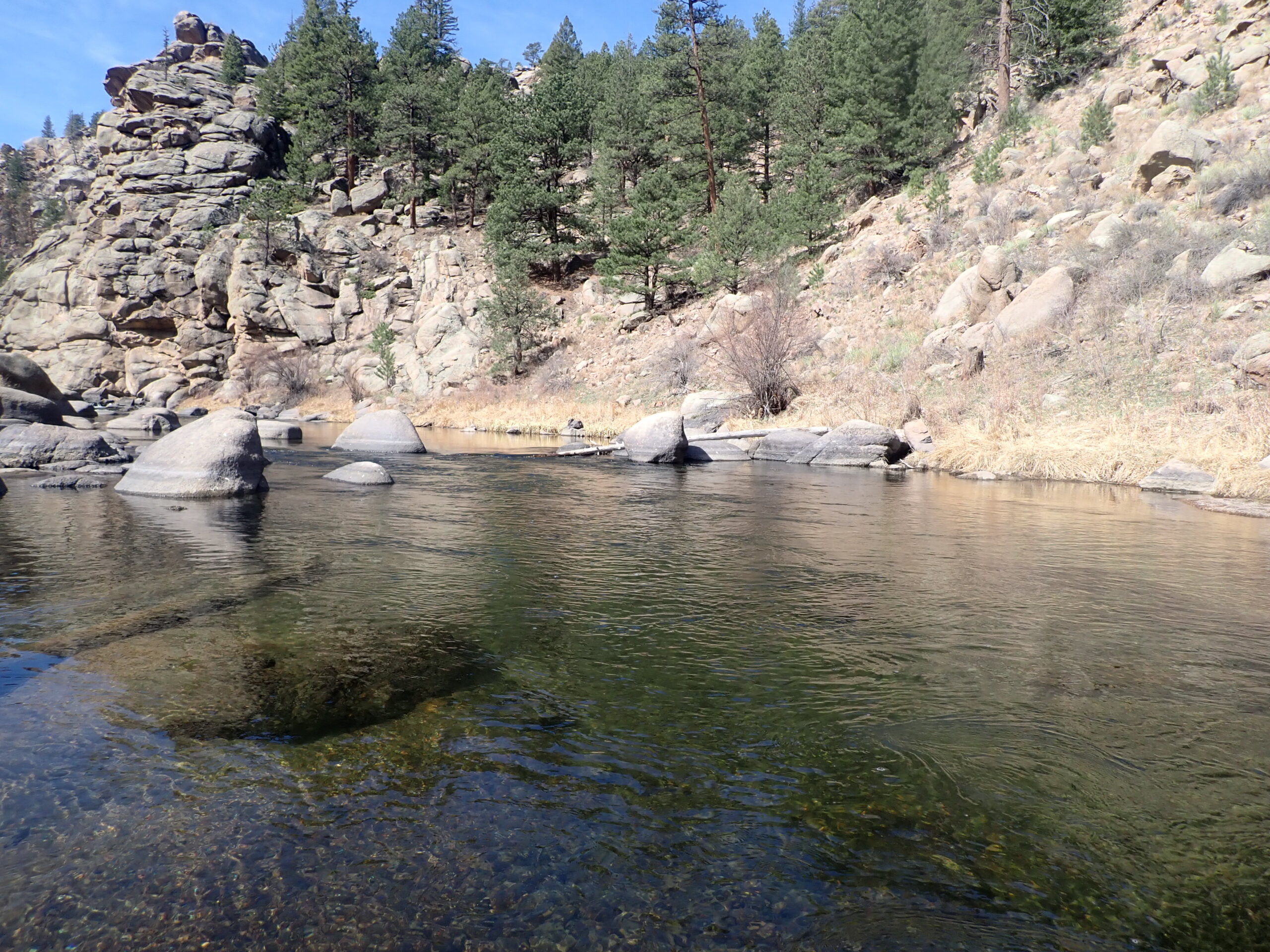 By 3:30PM I covered my targeted section of the river, so I hiked back to my crossing and completed my day. I achieved double digits and six of the landed fish were in excess of the twelve inch standard including two rainbows that exceeded fifteen inches. I have to admit that I was disappointed with the lack of dry fly action. I was convinced that prospecting with a deer hair caddis in the early afternoon would produce some results; but, alas, that was not the case. I spotted one blue wing olive, so perhaps it was too sunny, bright and windy, or I was on the downside of the baetis hatch. I suspect that another trip to the Arkansas River would take me upriver to the Salida area or above.