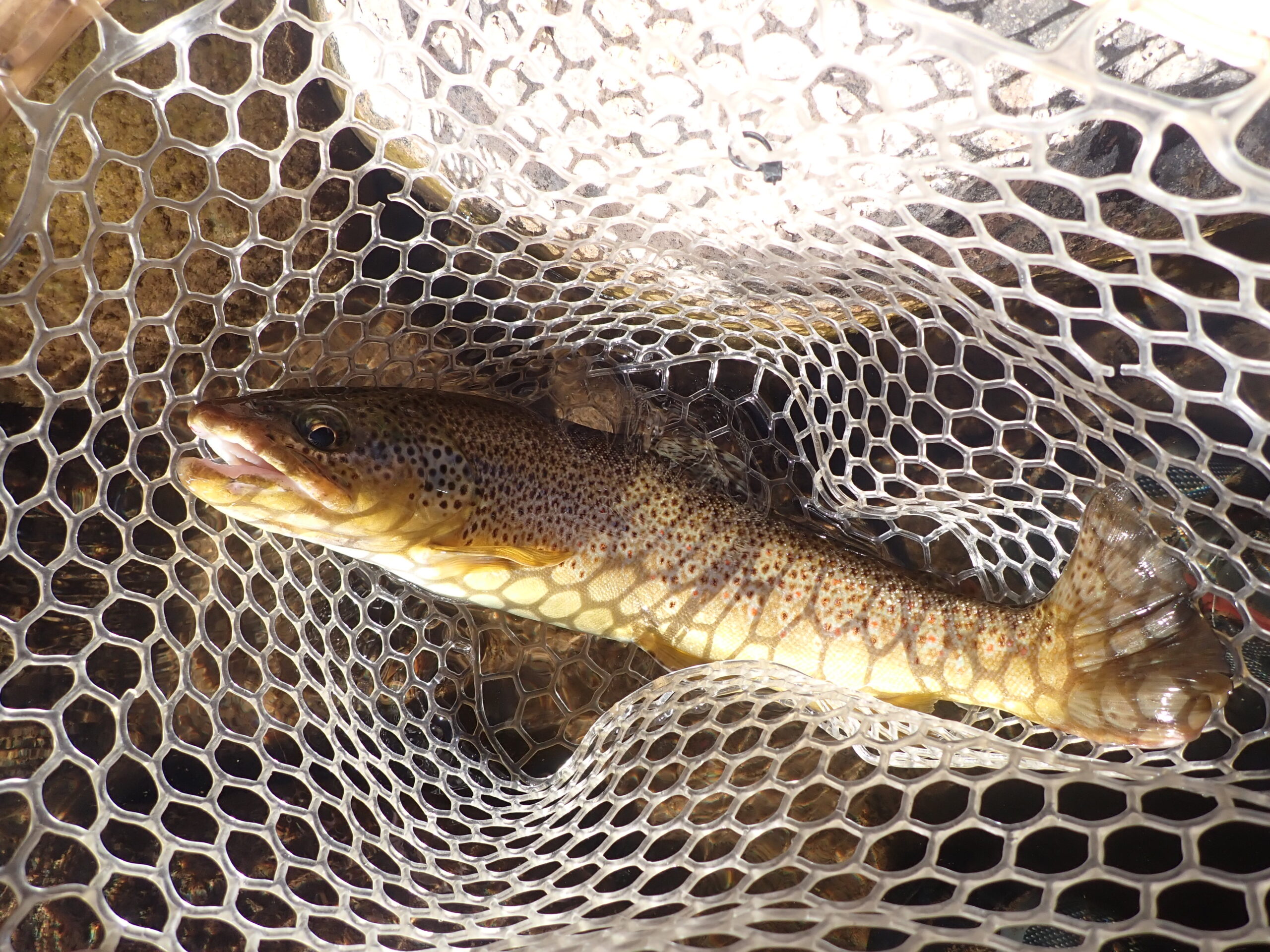 I returned to dry/dropper fishing, and during this go round I utilized a yellow fat Albert followed by a 20 incher and several nymphs. I started with a beaded soft hackle emerger, but it did not yield results, so I swapped it for a hares ear. The 20 incher produced a much appreciated fifteen inch brown trout for number eight, and then I suffered through a bit of a slump. I landed three additional trout that gobbled the beadhead hares ear, but they were on the small side, and I was spoiled from my earlier catches. In addition, I experienced a streak of long distance releases and foul hooked fish, and of course these felt like larger fish.