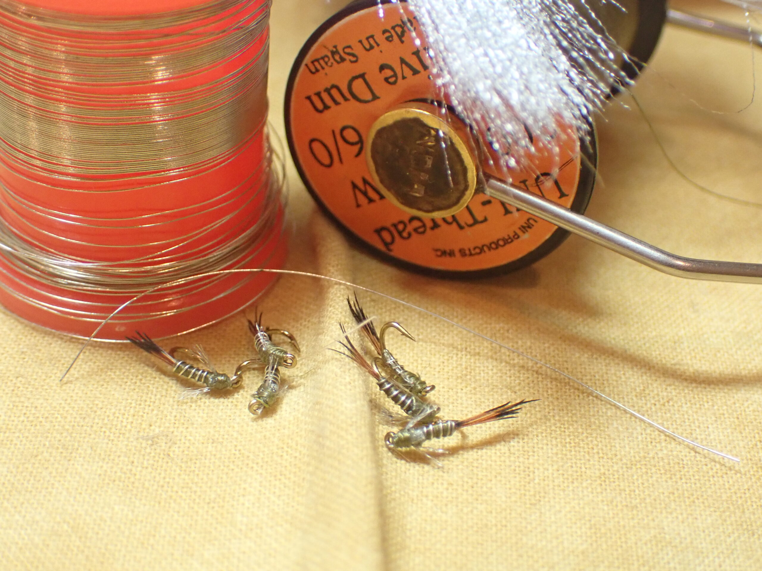 My go to baetis nymph flies are RS2’s. Juan posted a photo of his sniper baetis next to some natural nymphs, and I concluded that his imitation possessed a slimmer profile and, thus, a more precise imitation of a baetis nymph.